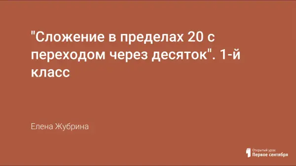Урок совершенствует вычислительные навыки сложения в пределах 20 с переходом через десяток. Урок применяет здоровьесберегающие технологии. Методы урока: проблемный и деятельностный, компьютерные технологии с целью развития логического мышления, социальных компетенций учащихся и мотивации.