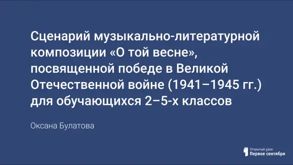 Цель композиции: расширить знания обучающихся о Великой Отечественной войне; воспитывать уважения к пожилым людям: ветеранам войны, труженикам тыла – участникам Великой Победы, чувство гордости за народ-победитель, прививать чувства сопереживания, сострадания за тех, кто пережил годы войны.