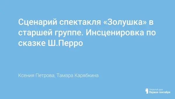 Представлен сценарий спектакля «Золушка» по сказке Ш.Перро в старшей группе.