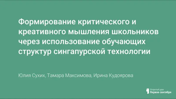 Формирование критического и креативного мышления школьников через использование обучающих структур сингапурской технологии