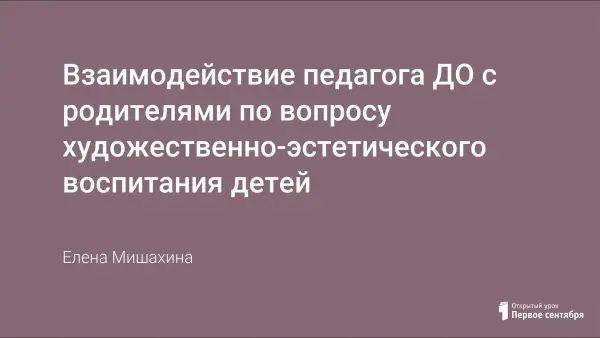 Представлена презентация, описывающая взаимодействие педагога ДО с родителями по вопросу художественно-эстетического воспитания детей.