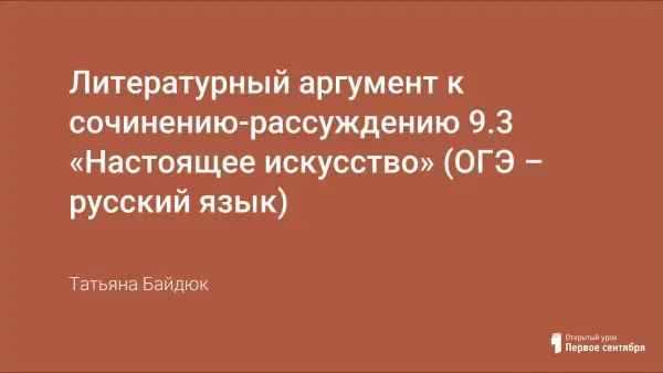 Литературный аргумент к сочинению-рассуждению 9.3 «Настоящее искусство» (ОГЭ – русский язык)
