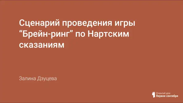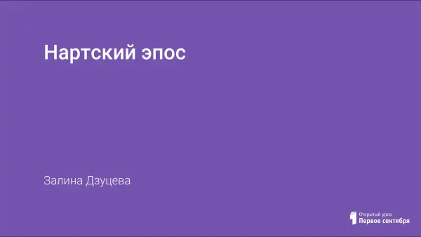 Осетинский нартовский эпос — это сказание о легендарных богатырях. Нартовский эпос следует рассматривать, как своеобразный свод нравственных правил древних осетин, как энциклопедию их воззрений на природу и общество. Представлена викторина по Нартскому эпосу.