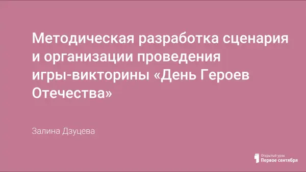 Данная методическая разработка предназначена для проведения игры-викторины «День Героев Отечества». В связи с праздником, в школе для учащихся 5-х классов прошла познавательная интерактивная игра «Знатоки истории Отечества». В начале мероприятия ребята познакомились с историей появления праздника, узнали, почему именно эта дата определена как «День Героев Отечества». Далее для учащихся была проведена игра-викторина на тему «Богатырская застава» и «Герои прошлых лет». Ребята отвечали на вопросы и получали жетоны. Класс, который собрал наибольшее количество жетонов, одержал победу.