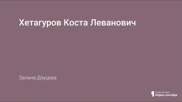 Урок посвящён выдающемуся поэту, просветителю, художнику и патриоту, чьё имя уже на протяжении полутора веков составляет важную часть не только осетинской национальной, но и российской отечественной культуры. Мы поговорим о творчестве К.Л.Хетагурова