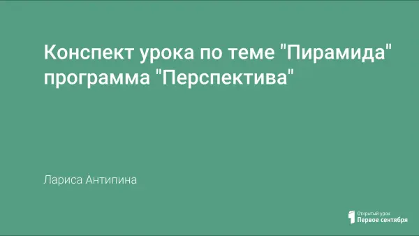 Урок призван выделить существенные признаки пирамиды, ее элементы («основание», «боковые грани», «вершины», «ребра») и некоторые свойства, учить распознавать виды пирамид по их основанию. Учащиеся научатся конструировать пирамиду и находить предметы окружающего мира, имеющие форму пирамиды.