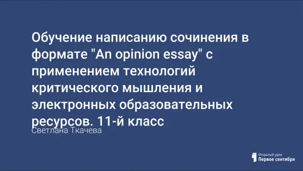 Обучение написанию сочинения в формате "An opinion essay" с применением технологий критического мышления и электронных образовательных ресурсов. 11-й класс