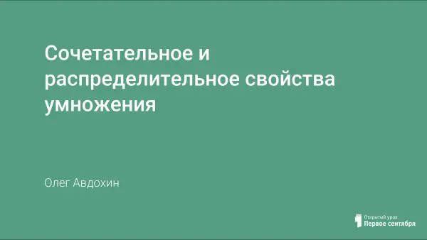 Закрепляются навыки умножения натуральных чисел и применения сочетательного и переместительного свойств умножения натуральных чисел, эти свойства записываются в виде формул. Для закрепления темы предлагаются варианты задач.