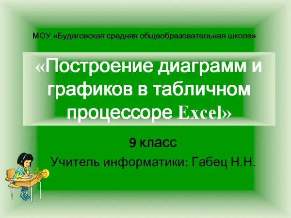 Электронная таблица – популярный редактор для работы с числовой информацией. Для представления числовых данных используются такие средства графики, как диаграммы. Электронная таблица использует 14 стандартных типов диаграмм и 20 нестандартных. Различают гистограммы, линейчатые диаграммы, график, круговые, точечные и т.п. Типы диаграмм задаются в зависимости от обрабатываемых данных или уровня наглядности представленных числовых данных.