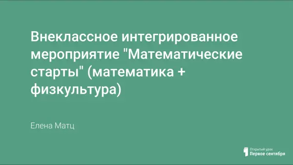 Интегрированное мероприятие математика + физкультура разработано для учащихся шестых классов. Способствует развитию интереса к предмету "Математика", воспитанию чувства товарищества, взаимопомощи. Позволяет снять физическое и психологическое переутомление у детей.