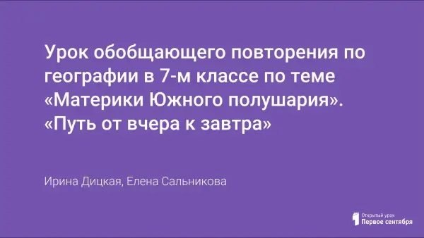 Урок обобщающего повторения по географии в 7-м классе по теме «Материки Южного полушария». «Путь от вчера к завтра»