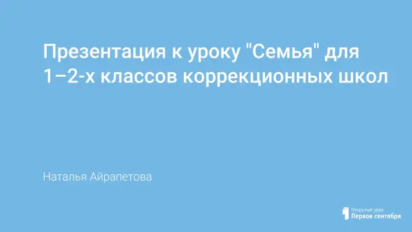 Представлена презентация к уроку "Семья" для 1–2-х классов коррекционных школ