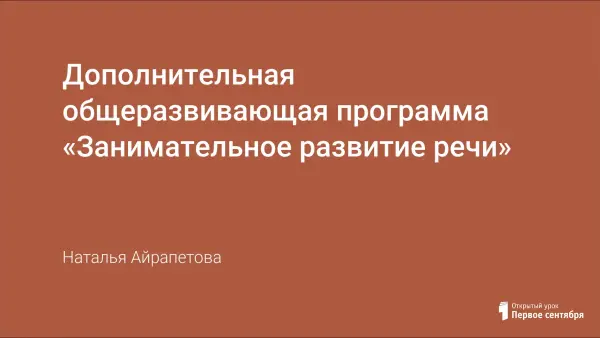 Представлена дополнительная общеразвивающая программа «Занимательное развитие речи».