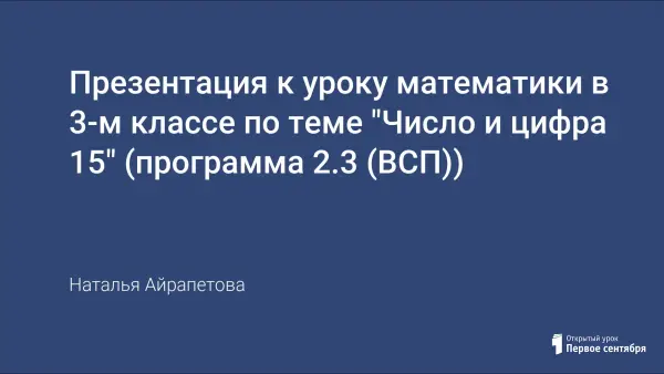 Представлена презентация к уроку математики в 3-м классе по теме "Число и цифра 15".