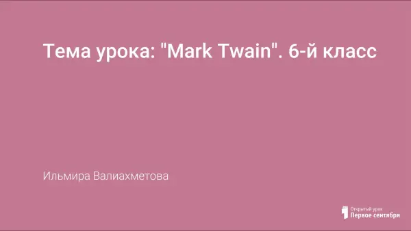 Урок расширяет страноведческий материал учащихся. Они узнают новую информацию об американском писателе Марке Твене, авторе любимых книг детства. Задействованы разные виды речевой деятельности: аудирование, чтение, письмо, монолог и диалог; парная и групповая формы работы. На уроке используется ролевая игра, модели All Write Round Robin, Clock Buddies и Raft. На завершающем этапе урока учащиеся начинают составлять постер по биографии писателя.