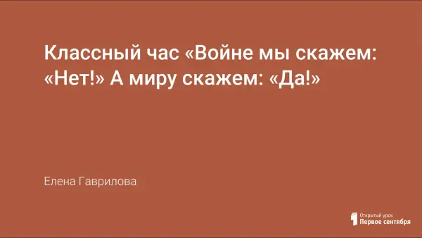 Задачи проведения классного часа: формирование представления о мире как многозначном понятии и высшей ценности современной цивилизации; воспитание гуманистических качеств личности; раскрытие значимости сохранения и укрепления мира как высшей ценности; изучение примеров самоотверженной деятельности людей в защиту мира; формирование понимания, что сохранение мира на Земле может быть достигнуто только в результате активной личной позиции каждого человека.