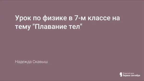Цель урока: рассмотреть физические основы плавания тел, причины различного поведения тел в жидкости в зависимости от плотности вещества и жидкости.