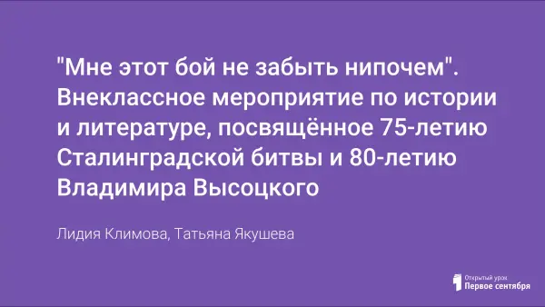 "Мне этот бой не забыть нипочем". Внеклассное мероприятие по истории и литературе, посвящённое 75-летию Сталинградской битвы и 80-летию Владимира Высоцкого