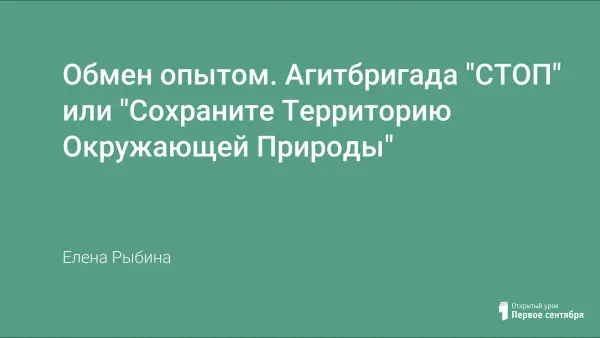 Представлен сценарий проведения агитбригады "Сохраните Территорию Окружающей Природы".