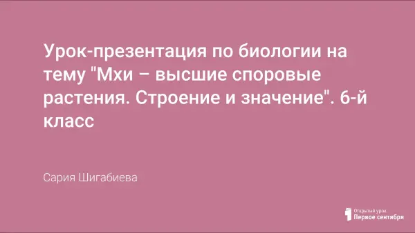 Урок направлен на формирование навыков практической деятельности учащихся, повторение и углубление пройденного материала, изучение нового материала о мхах как о группе высших споровых растений, особенности их строения. Деятельность учащихся организовывается через различные формы и виды деятельности: групповую работу, работу в парах, работу с микроскопом и гербарным материалом.