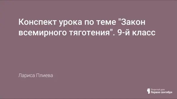 Конспект урока по теме "Закон всемирного тяготения". 9-й класс