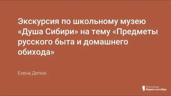 Цели урока: познакомить учащихся с предметами быта русских крестьян на примере школьного этнографического уголка; содействовать воспитанию любви к истории своей малой родины.