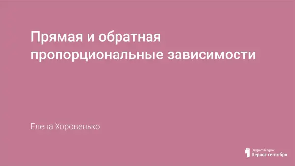 Цель: сформировать у учащихся понятия прямой и обратной пропорциональной зависимости.