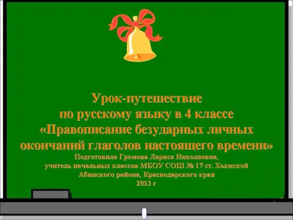 Урок призван формировать умение писать безударные личные окончания глаголов настоящего времени; развивать умение обосновывать правильное написание безударных окончаний глаголов настоящего времени.