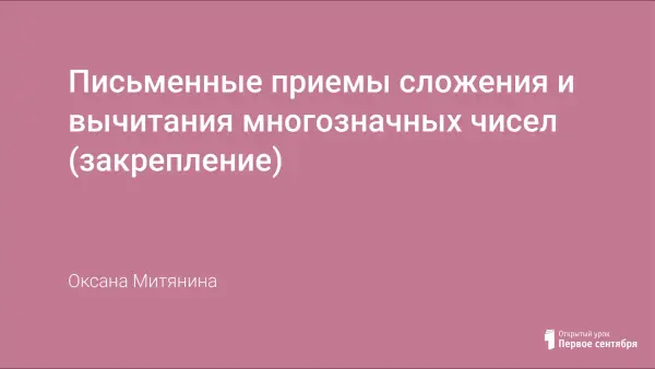 Урок рассчитан на группу учащихся 14–15 лет с легкой умственной отсталостью и призван закрепить знания письменного сложения и вычитания любых многозначных чисел, совершенствовать мыслительную деятельность (анализ, синтез, обобщение) в математических упражнениях и задачах; совершенствовать речь в чтении примеров и текстов задач. Формирует умения слушать, слышать и самостоятельно оценивать свою деятельность.
