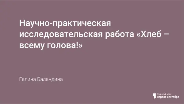 Цель проекта: определить значимость хлеба для человека и ответить на вопрос, почему «Хлеб всему голова».