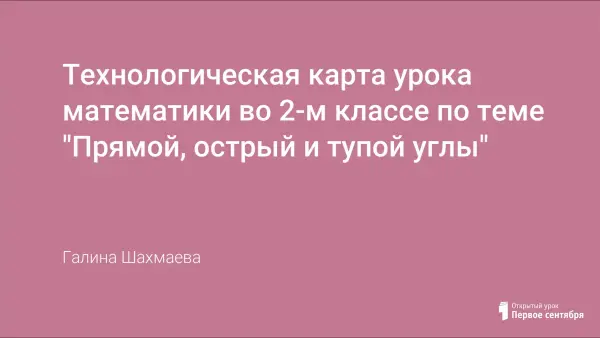 Цель урока: знакомство с понятиями «прямой угол», «острый угол» и «тупой угол», развитие умения строить прямой угол с помощью чертёжного угольника и различать виды углов.