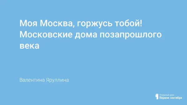 Моя Москва, горжусь тобой! Московские дома позапрошлого века
