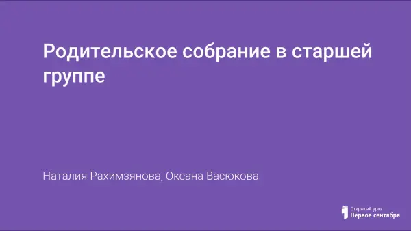 Представлено родительское собрание в старшей группе по ознакомлению родителей с программой дошкольного образования детей 5–6 лет.