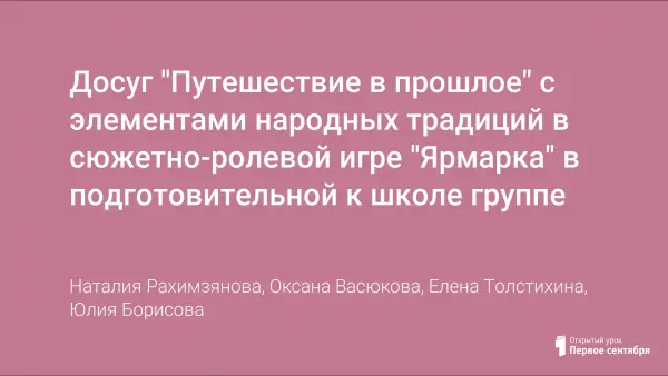 Досуг построен в форме путешествия в прошлое во времена наших прабабушек и прадедушек. Дети попадают на русскую ярмарку и вместе с ведущими, скоморохом и матрешкой, выполняют интересные задания. Цель досуга - вызвать у детей интерес к искусству своего народа: народным играм, фольклору. Научить ценить традиции русской культуры, воспитывать чувство национального достоинства, развивать творческие способности детей.