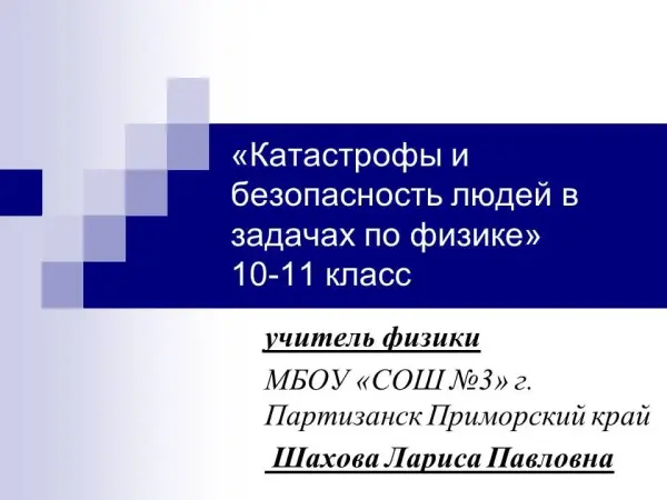 Представлены задачи по физике о катастрофах и безопасности людей. Приводятся решения к ним.