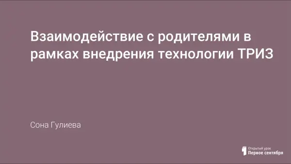Представлена презентация по теме "Взаимодействие с родителями в рамках внедрения технологии ТРИЗ"