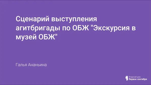 Данный сценарий был написан для выступления агитбригады по предмету основы безопасности жизнедеятельности. Выступление помогает показать важность изучения предмета ОБЖ, рассказать о широких сферах применения знаний по ОБЖ, в каких жизненных ситуациях пригодятся знания по этому предмету.