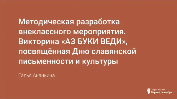 Цель мероприятия: закрепить знания учащихся об истоках родного языка и письменности; воспитывать бережное к ним отношение и уважение. Задачи: познакомить учащихся с шедеврами древнерусской книжности; показать значение деятельности Кирилла и Мефодия для отечественной книжной культуры; прививать интерес и любовь к истории России, славянских народов.