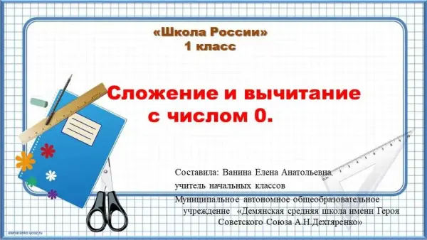 Цель урока: познакомить с особенностями прибавления и вычитания числа 0.