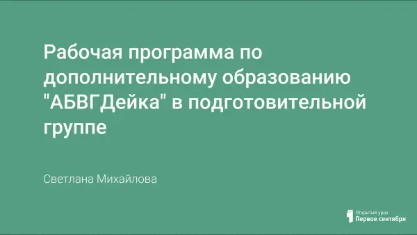 Рабочая программа «АБВГДейка» направлена на повышение уровня интеллектуальных и познавательных способностей детей старшего дошкольного возраста. Программа кружка «АБВГДейка» представляет систему интеллектуально-развивающей образовательной деятельности для обучающихся подготовительной группы. Программа реализована в рамках совместной образовательной деятельности в соответствии с ФГОС. Программа «АБВГДейка» является интегративной, объединяющей знания, входящие в образовательные области: социально-коммуникативное развитие, познавательное развитие, речевое развитие, художественно-эстетическое развитие, физическое развитие.
