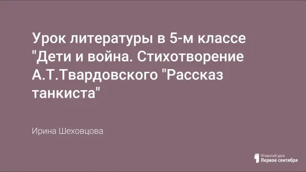 Цели урока: изучить стихотворение А.Т.Твардовского, посвящённое теме военного детства; повышать интерес к изучению русской истории через литературное произведение; способствовать развитию связной речи, памяти, произвольного внимания, наглядно-образного мышления.