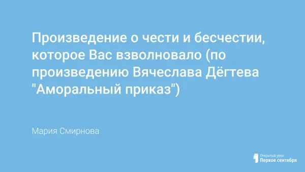 В жизни каждого читателя есть книга, которая помогла ему заглянуть в себя, ответить на вопрос: почему и для чего я живу. Люди сами выбирают, по какой дороге им идти. Есть один небольшой рассказ, который заставляет нас задумываться о многом. Это рассказ Вячеслава Дегтева «Аморальный приказ». Возможно, это произведение станет отправной точкой в понимании мира и себя в нём.