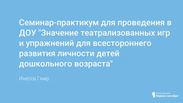 Семинар-практикум для проведения в ДОУ "Значение театрализованных игр и упражнений для всестороннего развития личности детей дошкольного возраста"