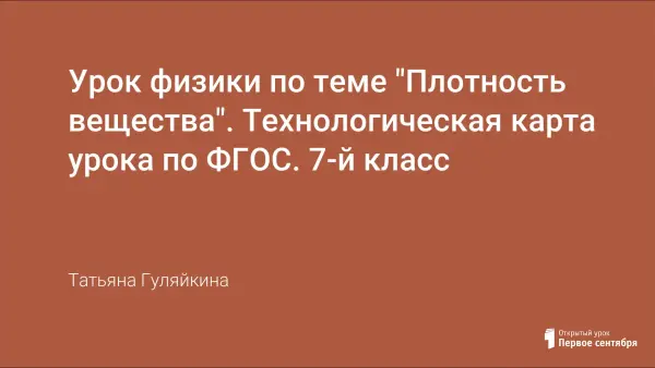 Урок должен носить проблемный и развивающий характер, способствовать формированию личностных и предметных компетентностей, УУД. Учителю предлагается для оформления «целостной картины современного урока» использовать технологическую карту. Это позволяет структурировать урок по заданным параметрам. В предлагаемой работе представлена разработка урока «Плотность вещества» в виде технологической карты.