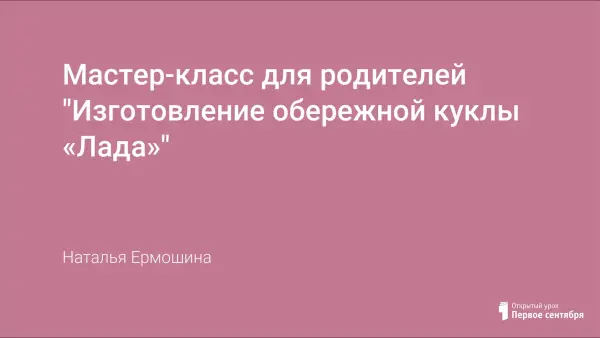 Цели мастер-класса: формирование интереса родителей и детей к традициям народного творчества, к совместной деятельности ребенок–родитель–воспитатель; вовлечение родителей в образовательный процесс детей через участие в мастер-классе.