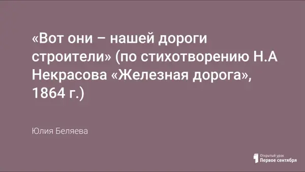 Цель урока: формирование у учащихся представления о народе как созидателе духовных и материальных ценностей на примере стихотворения Н.А.Некрасова «Железная дорога».