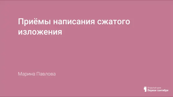 Представлена презентация по теме "Приёмы написания сжатого изложения".