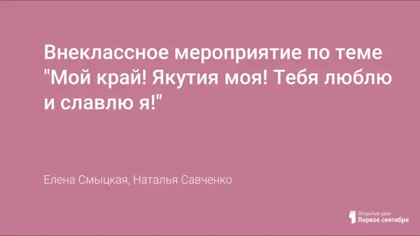 Внеклассное мероприятие по теме "Мой край! Якутия моя! Тебя люблю и славлю я!"