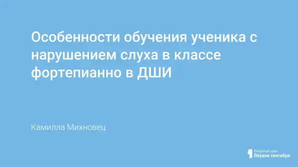 Может показаться, что музыка – вид искусства, недоступный для ребенка с нарушением слуха. Однако исследования специальных педагогов в этой области показывают абсолютно другие результаты. Больше всего надо избегать изоляции ребенка от звуков. Если ребенок постоянно будет слушать звуки, у него разовьется способность слышать. Однако, важно развивать у таких детей способность слышать с детства, тогда результаты будут очень хорошими. В статье будут рассмотрены особенности музыкального воспитания и конкретный пример ученика с нарушением слуха в классе фортепиано в ДШИ: этапы обучения, восприятия и понимания музыки, уровень достижений ученика в процессе обучения.