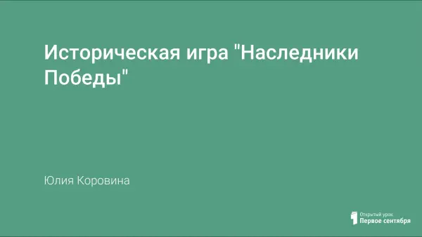 Игра «Наследники Победы» даёт возможность повторить материал об основных событиях Великой Отечественной войны, а также дополнительно изучить данные по краеведению, найти дополнительную информацию. Конкурсная программа предусматривает разные задания на этапах игры: «Сражение Великой Отечественной войны», «По местам великих битв», «Герои Войны», «Маршалы Победы», «Краеведческий», «Города-герои», «Памятники родного города Кемерово, посвященные Великой Отечественной войне». Игра позволяет использовать историческую карту как источник информации, для этого есть задания, такие как: определить по исторической карте событие, города. Локализовать во времени хронологические рамки позволяет задание на знание хронологии важнейших битв в ходе войны.